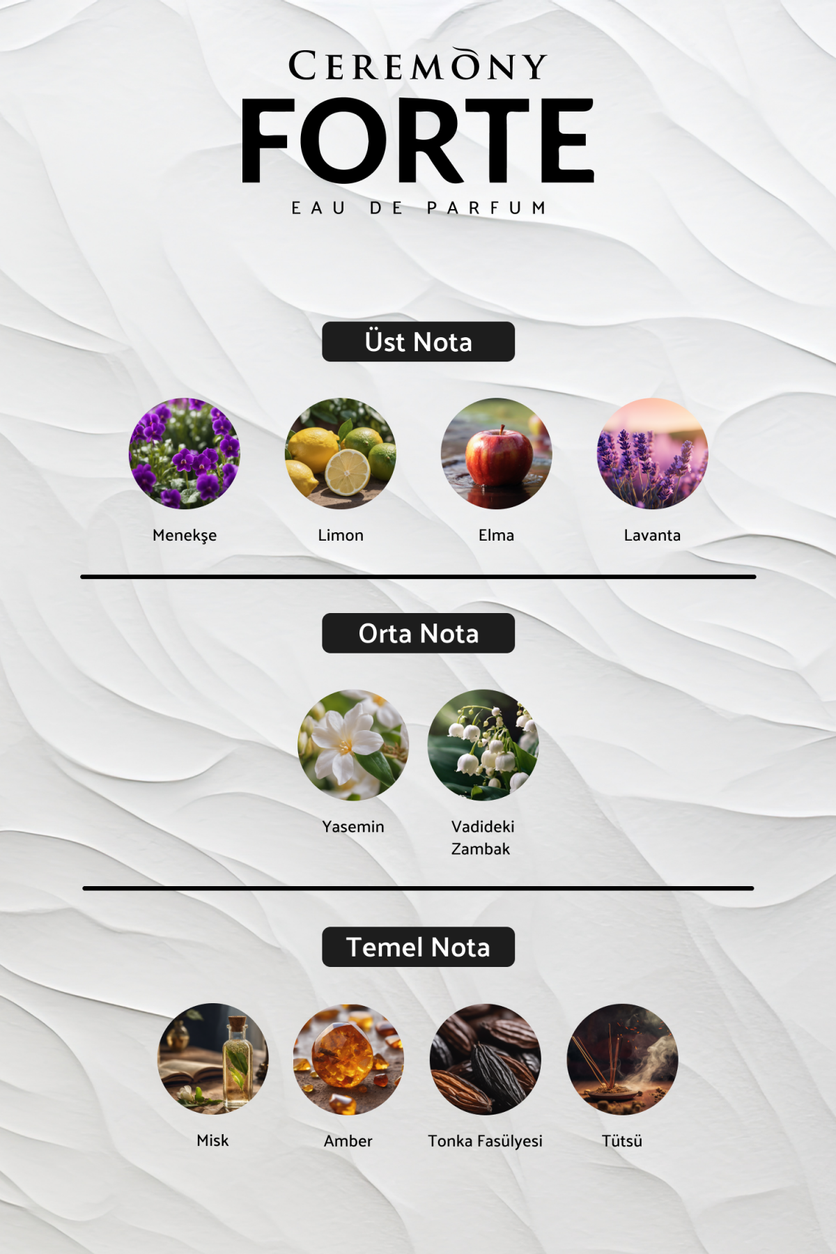 In the Middle Notes, Jasmine and lily of the valley represent the peace and beauty at the heart of nature, evoking the calm and serenity of the valley hidden in the depths.